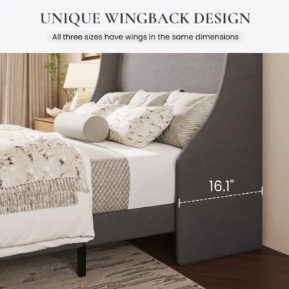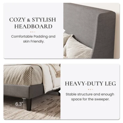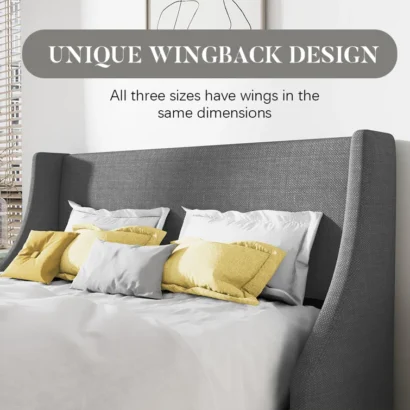 - ✅ Modern Wingback Headboard: Elegant and cushioned, with a vertical stitched design