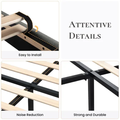 - ✅ No Box Spring Required: Strong wooden slats for optimal mattress support