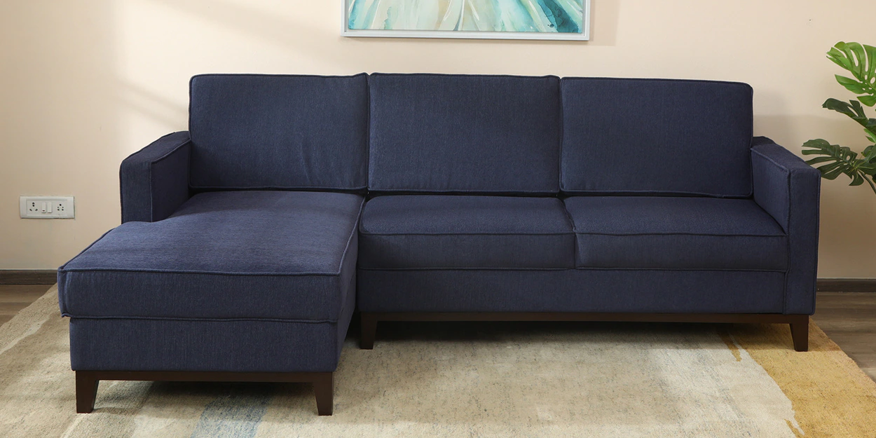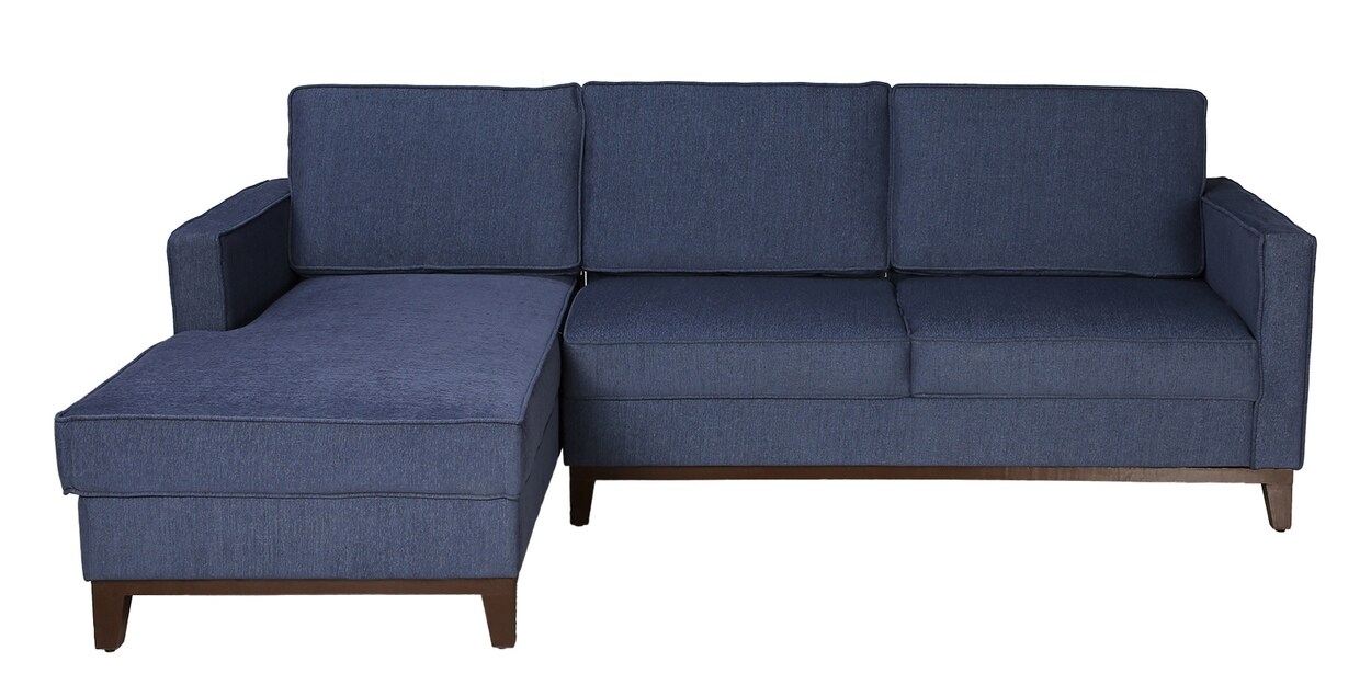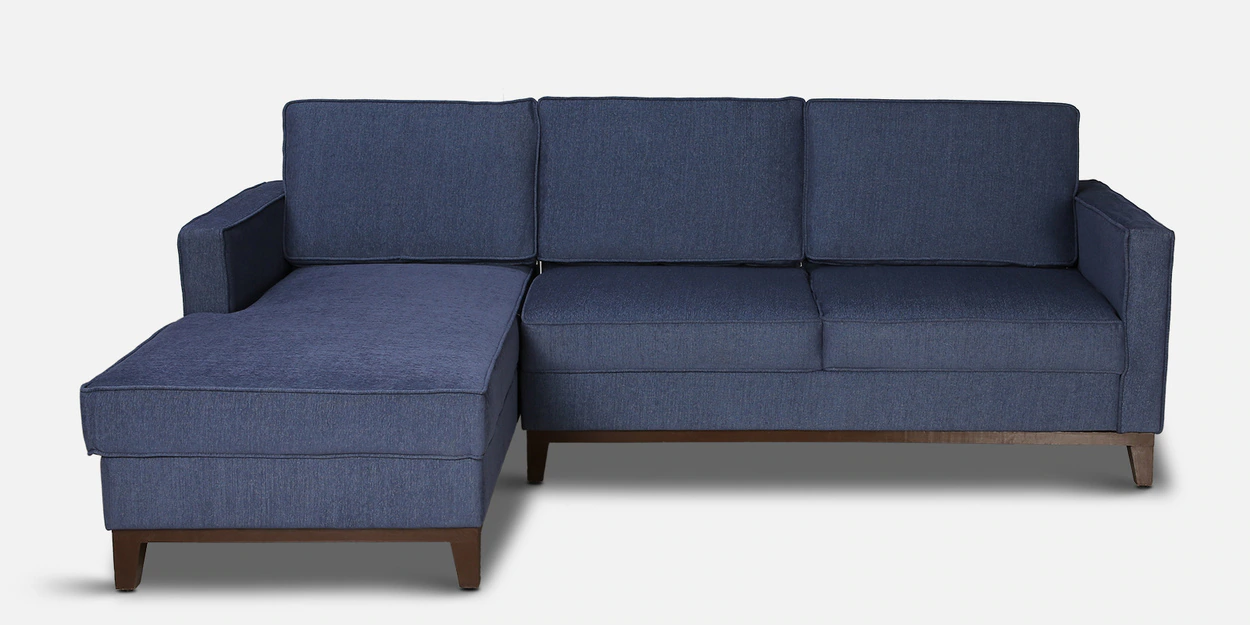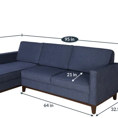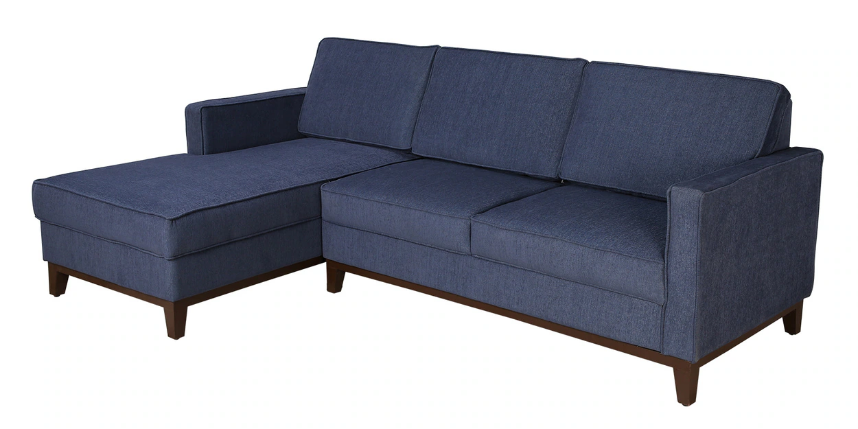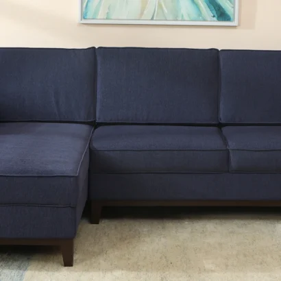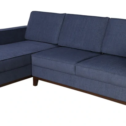 The Dunford Sofa RHS Sectional by Woodsworth blends functionality and elegance. Its right-hand facing (RHS) lounger provides optimal relaxation, while the L-shape fits snugly into corners, maximizing space. The denim-blue Azora fabric adds a pop of color and is engineered for daily use, resisting wear and spills.