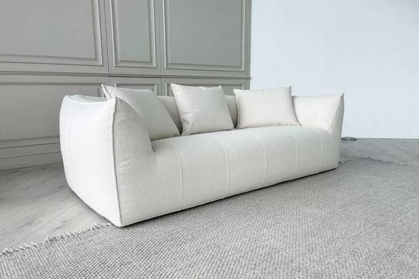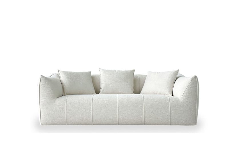 Soft and stylish 3-seater sofa in plush white fabric. Perfect for modern living rooms seeking comfort and elegance.