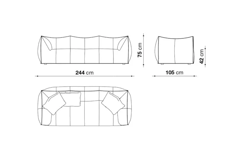 - Dimensions: 244 cm (length) x 105 cm (depth) x 75 cm (height)