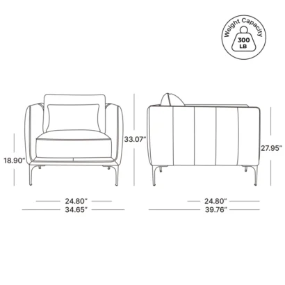 The Rae Armchair combines modern comfort and sleek curves. With generous proportions, a plush seat, and a bold silhouette, it’s the perfect statement piece for your living room, bedroom, or office lounge.