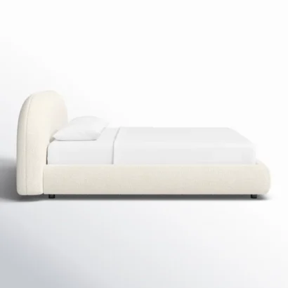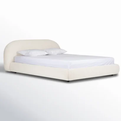 The Sadarius Upholstered Bed Frame combines comfort, charm, and minimalism in one stylish design. Upholstered in soft ivory bouclé, it features a rounded headboard and fully padded frame for a warm, cozy feel.