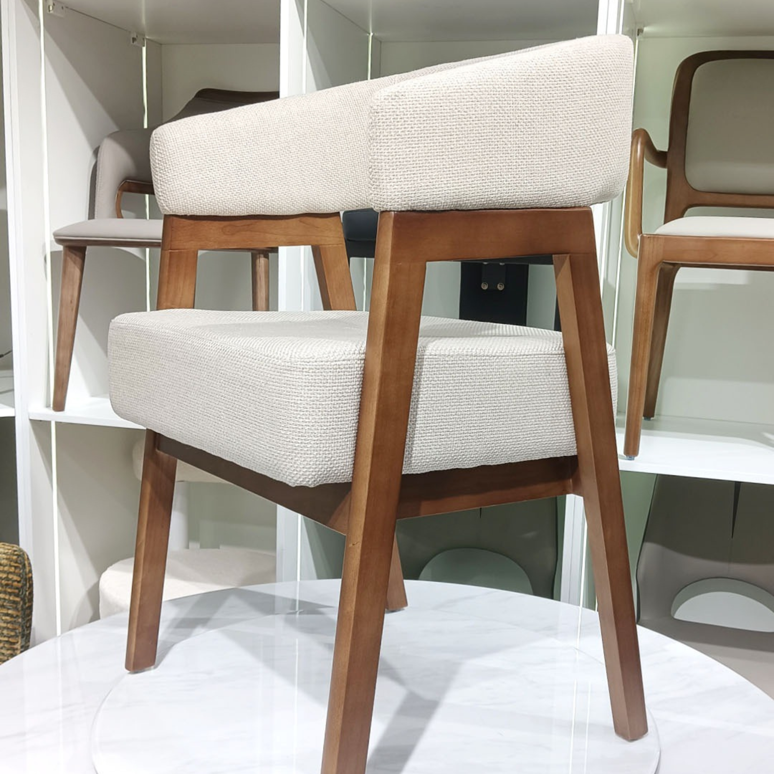 Crafted with a sturdy, solid wood frame in a rich walnut finish, the tapered legs provide exceptional stability while maintaining a light, airy aesthetic. Whether you are furnishing a high-rise apartment in Dubai or a villa in Abu Dhabi, the Scandi-style dining chair is the ultimate choice for those who value both style and durability.